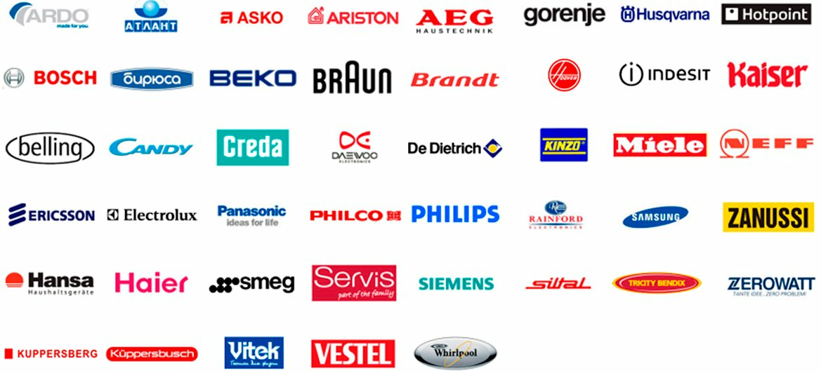 Атлант, Akai, Ardo, Ariston, AEG, Whirlpool, Liebherr, Gorenje, Vitek, Beko, Samsung, LG, Bosch, Siemens, Indesit, Electrolux, Zanussi, Bompani, Viking, Sharp, Rolsen, Hitachi, Körting, Hansa, Philips, Toshiba, Supra, Stinol, Elenberg, Smeg, Blomberg, TEKA, Kuppersberg, POZIS, Panasonic, Leran, Орск, Shivaki, Kuppersbusch, National, Мир, Miele, Candy, Akira, Daewoo, General-electric, Polar, Brandt, Минск, Goldstar, Vestfrost, Vestel, Бирюса, Haier, Midea, Neff, Mystery, SILTAL, Hotpoint-Ariston. Если вы не нашли вашу марку, то просто позвоните мне: